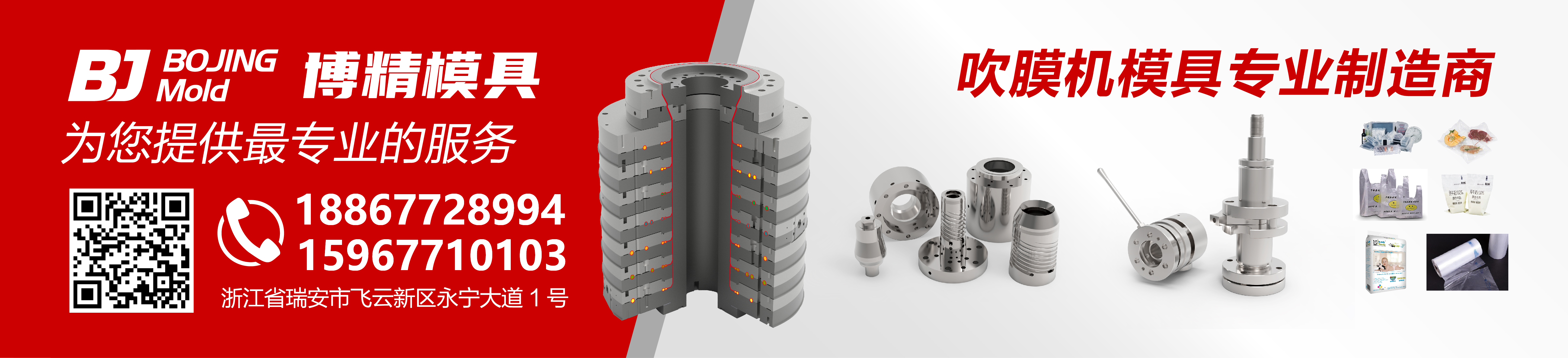 溫州博精塑料模具有限公司,是一家生產各種吹膜機模頭的企業,本企業設備力量雄厚,不但能夠生產制造各種模具、還可以根據客戶的實際要求設計,定做不同規格的產品,以滿足客戶的特殊需求。 本企業自成立起,一直堅持三個目標“以客戶為中心,以產品質量為中心,以售后服務為中心”,贏得了廣大客戶群體的一致認可。企業宗旨“信守諾言,服務上,售后制度完善” 本企業將繼續一如既往地為廣大新老用戶提供的產品,讓我們共同攜手,鑄就您事業的輝煌!